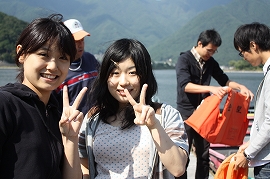 ![]() ▲ 河口湖でボートに乗ろうとしているところ |